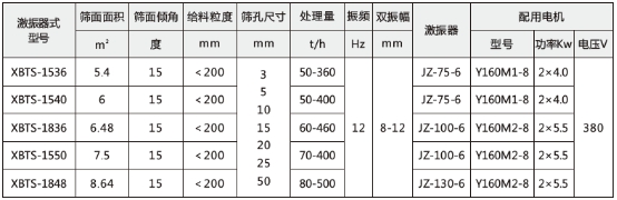 XBTS系列彈臂振動(dòng)篩面傾斜安裝,角度在20°-35°之間,與其它同類(lèi)型產(chǎn)品相比具有下列特點(diǎn):